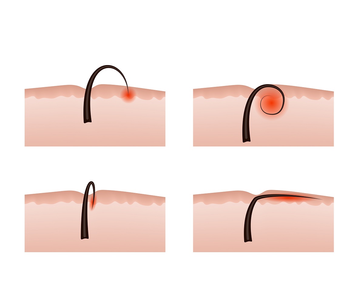 Si le poil ne sort pas spontanément sur la peau, il peut s’enflammer et donner l’aspect d’une petite boule rouge et dure qu’il faut absolument laisser tranquille et ne pas s’y toucher par une pince ou une aiguille (risque d’infection).